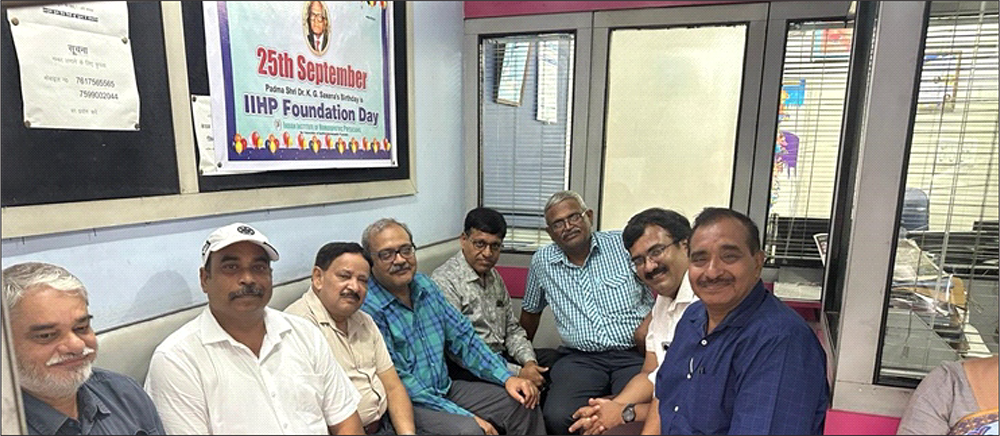 IIHP W G District Unit, AP State Chapter Celebrated 112th Birth Anniversary of Founder of IIHP,Late Padmasree Dr K G SAXENA at Sree Ratneswara Homoeo Hospital,Eluru between 3-5pm along with CMEP by Dr P Krishna Chaitanya of Vijayawada. Around 15 IIHP Members graced the occasion and paid rich tributes to Late Padmasree Dr K G SAXENA . Report by -Dr K S S SIVAMURTHY, National Vice President (South zone), IIHP.