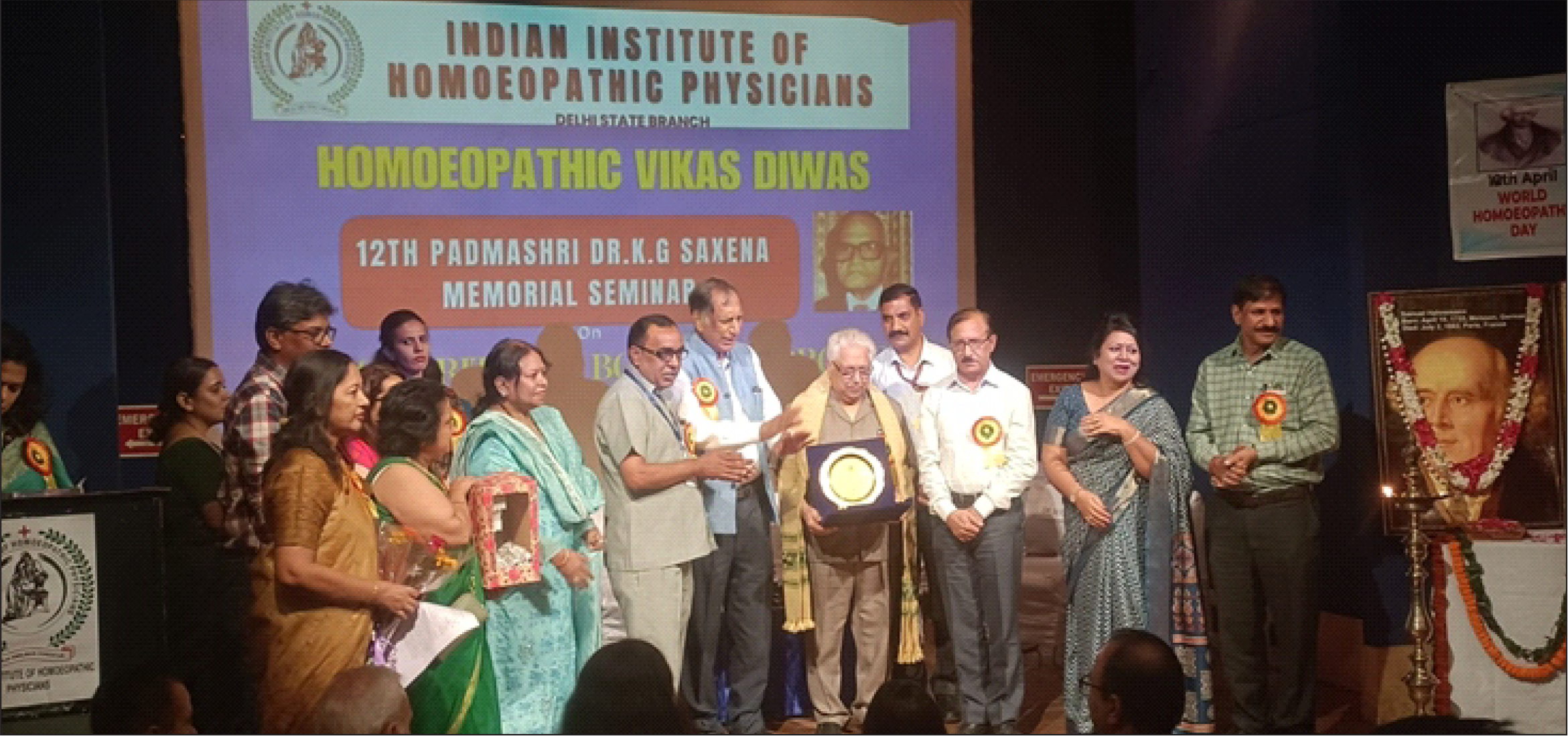 Delhi state branch organised 12th Padmashri Dr K G Saxena Memorial Seminar today on 29 September 2024. The main topic was IBS and Homoeopathy. In this gala event Prof Dr V K Chauhan was facilitated with LIFE TIME ACHIEVEMENT AWARD.
